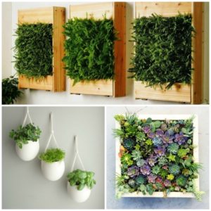 Jardim vertical (paredes com plantas vivas), além de estéticas, fornecem oxigênio e umidade, melhorando a qualidade do ar e a nossa saúde.