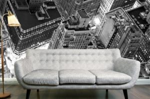 Escolha uma bela imagem e procure uma empresa de comunicação visual para fazer a impressão digital em vinil adesivo ou compre seu papel de parede pronto em lojas online.